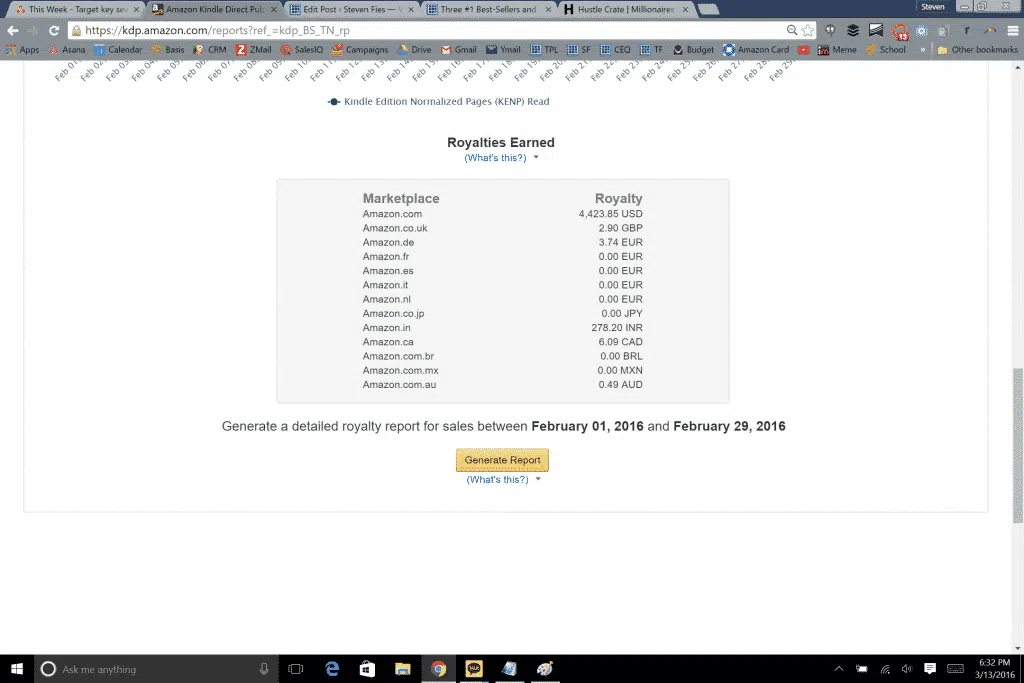 Three #1 best-sellers and $7,500 in book sales in Feb 2016.